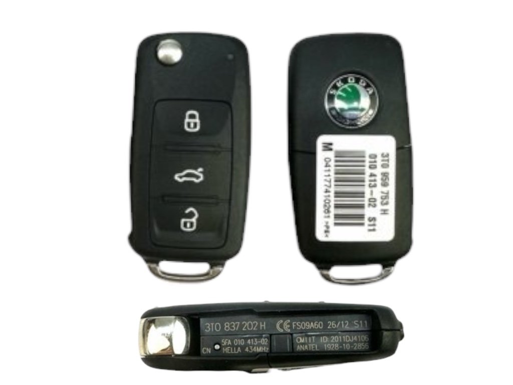 3T0837202H Kľúč ŠKODA (kľúč s diaľkovým ovládaním a imobilizérom, bez kľúčenky)