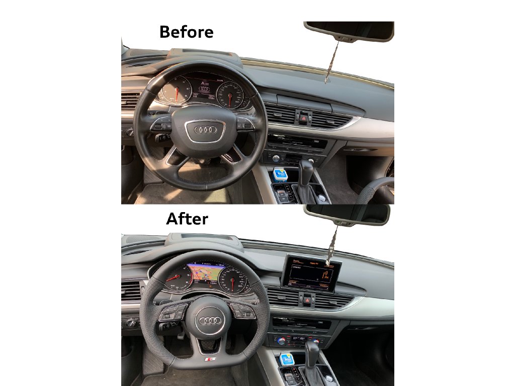 Možnosť montáže v našom závode aj do iných vozidiel (A1,A2,A3,A4,A5,A6,A7,A8,Q2,Q3,Q5,Q7,TT) podľa modelového roku staršie modelové roky s prevodníkom signálu pre MF + 2.000kč.Súčasné modelové rady väčšinou bez potreby prevodníka.