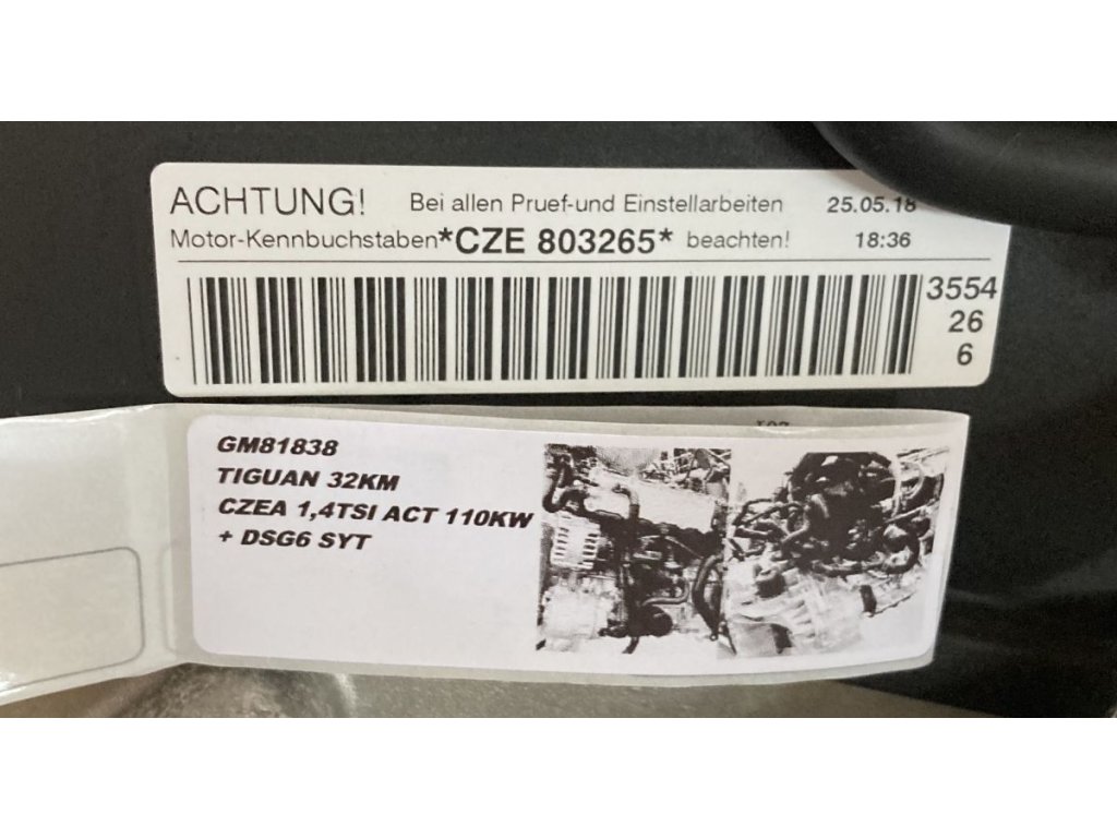 Motor CZE / CZEA 1.4 TSI 110kW Najazdené km : 32Km (doložiť) Cena je za holý motor Príslušenstvo: vstrekovače, lišta, sanie, vysokotlakové čerpadlo, olejový výmenník, alternátor, kompresor klímy, všetky snímače, turbo , EGR ventil, DPF, palivový filter, medzichladič, el.